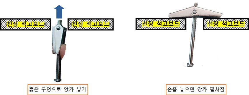 그래서 나비 앙카를 사용하여 걸어 놓는 방식이 좋다고 판단했습니다.