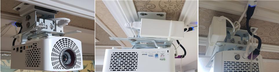 3. 전원선 및 HDMI 케이블 연결 : 천장에 고정시키고 나면 전원선, HDMI 케이블을 연결합니다.