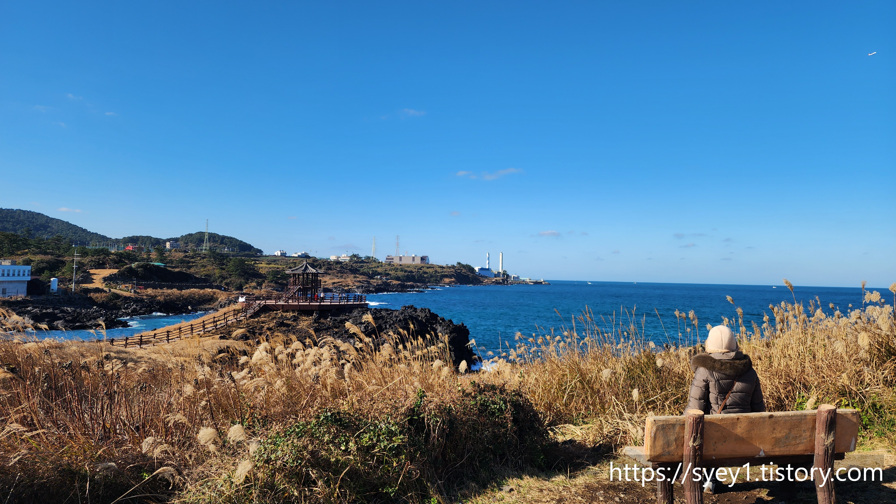 이상해서 쉼터에 앉아 닭머르 해안을 바라보며