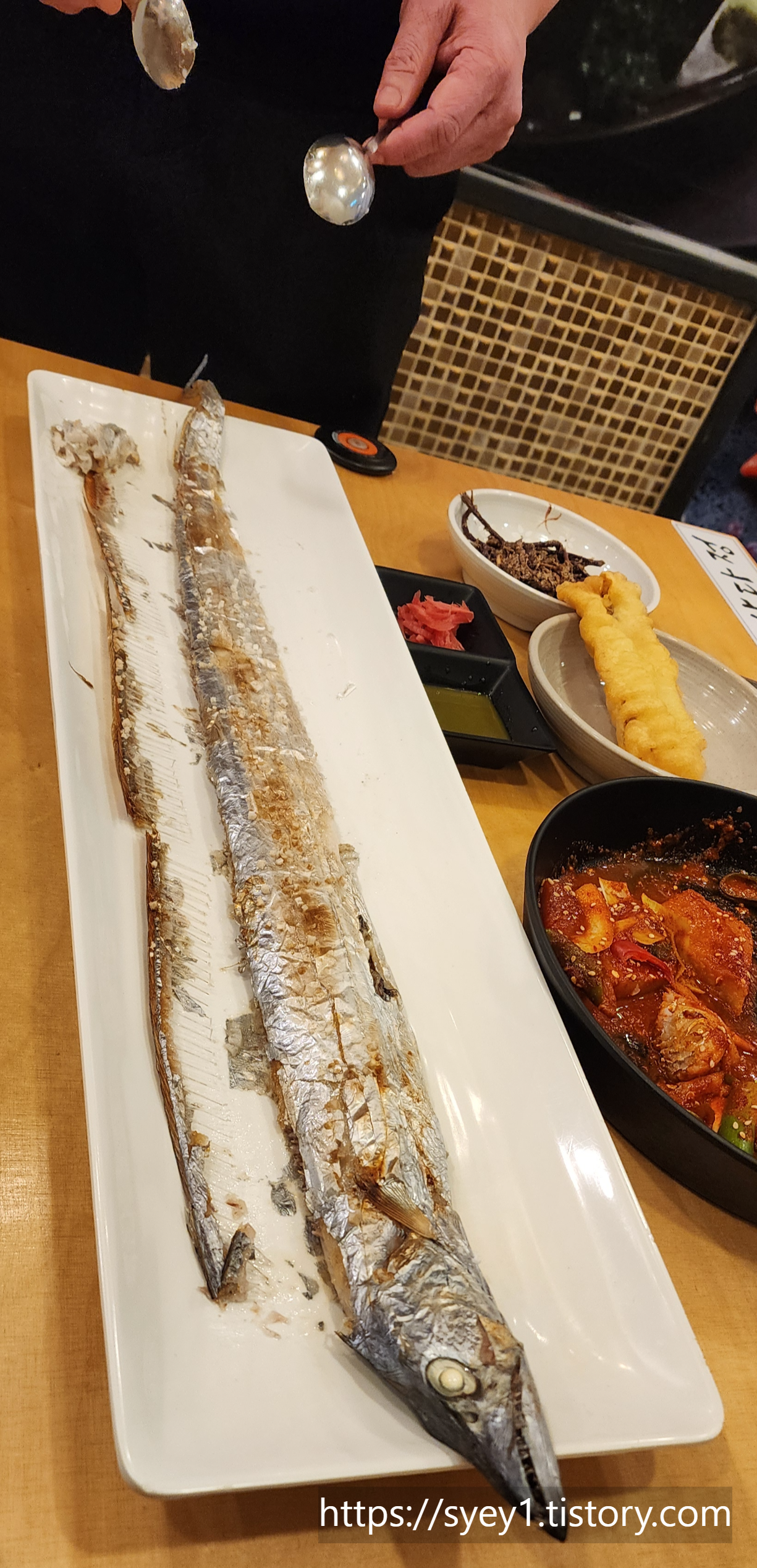 사장님께서 갈치구이를 가지고 나오셨다.