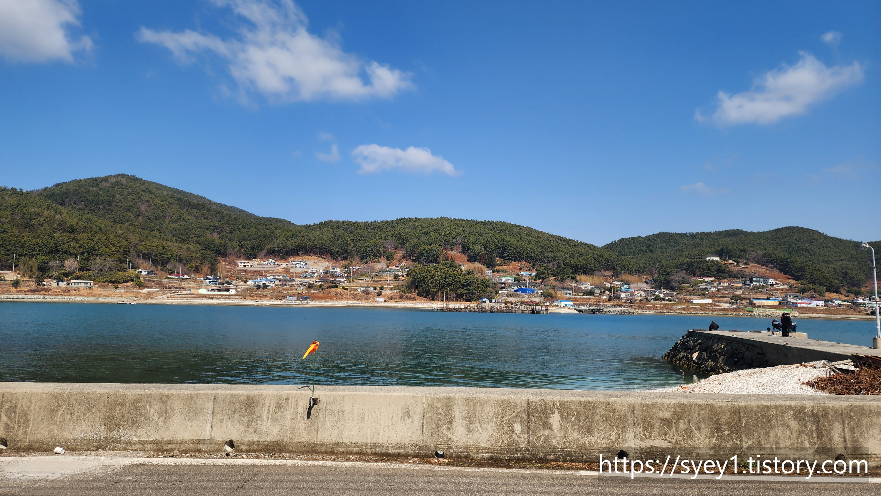 가게 앞은 잔잔한 바다가 보인다.